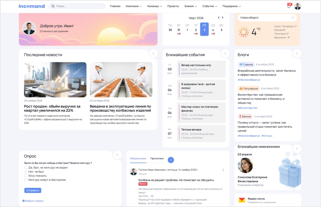 Postgres Professional, разработчик российской СУБД Postgres Pro, и компания ЕМДЕВ, разработчик корпоративного портала Инкоманд, объявляют о совместимости своих продуктов. Российский бизнес получает готовую связку: корпоративный портал Инкоманд для внутренних коммуникаций, HR‑процессов, заявок, документооборота и сервисного каталога, работающий поверх промышленной СУБД Postgres Pro. Это снижает риски фрагментации ИТ‑ландшафта и позволяет выстраивать отказоустойчивую, масштабируемую инфраструктуру для десятков тысяч пользователей, снижать зависимость от зарубежных платформ уровня Microsoft SharePoint.