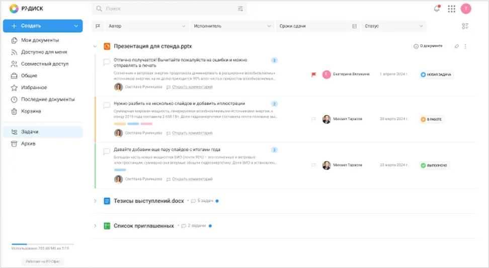 В корпоративном супераппе VK WorkSpace обновился веб-интерфейс. Ключевые сервисы платформы теперь собраны в вертикальной панели слева. Переключаться между ними можно в одной вкладке браузера, а не в разных, как раньше. При этом текстовые файлы, таблицы и презентации из Документов открываются в отдельных вкладках. Так удобнее редактировать документ и одновременно работать с другими сервисами в супераппе — например, уточнять детали в Мессенджере или Почте. Еще одно важное обновление - появление в веб-версии сервисов для совместной работы Доска и Документы. На Доске можно работать с контентом в реальном времени, создавать интеллект-карты и структурировать рабочие процессы. В Документах - создавать и совместно редактировать тексты, таблицы и презентации, которые хранятся на Диске.