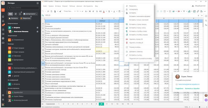 Корпоративный мессенджер Squadus (российский аналог Microsoft Teams) разрабатывает та же компания, что и офисный пакет МойОфис. Поэтому им было не сложно добавить в мессенджер возможность редактирования документов прямо в чате, без скачивания файлов и установки дополнительного ПО. В веб- и в настольном клиентах Squadus можно редактировать тексты, таблицы и презентации. При необходимости пользователь может добавить комментарий с уточнением о внесенных изменениях. К недостаткам новой функции можно отнести отсутствие возможности совместного редактирования открытого таким образом документа. Одновременно вносить правки в документ непосредственно из чата Squadus может только один пользователь. Кроме того, обновленное приложение может похвастать появлением функциональности пользовательских папок, интеграцией с календарем Microsoft Outlook и возможностью добавления новых пользователей по звонку в конференцию.